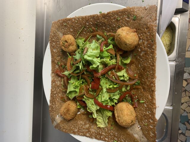 Dans un cadre charmant et convivial et grâce à nos délicieuses créations faites à maison, dans la « Crêperie Delices », nous inspirons nos clients dès leur première visite. Notre sublime crêperie est bien située et très confortable, vous pouvez donc vous y arrêter en tout temps pour prendre un café ou un déjeuner. nn Nous proposons aussi des plats végétariens à nos visiteurs – donc tout le monde trouvera une spécialité à son goût. Nous proposons en outre une sélection délicieuse de plats sans gluten pour une alimentation plus saine. Vous serez surpris du nombre de possibilités de repas sains dont vous disposez.nn Notre magnifique extérieur vous permet de vous évader lorsqu’il fait bon.
